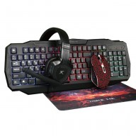 Teclado - Teclas: 104 - Tipo de interruptor: membrana - Vida útil: 10 millones presiones. - Ruta clave: 2.0 ± 0.3 mm - Fuerza de trabajo: 55 ± 7 g - Luz de fondo: arco iris - Longitud del cable: 1,5 m Auriculares - Sonido: estéreo - Respuesta de frecuencia: 20 Hz - 20 KHz - Tamaño del altavoz: 40 mm - Sensibilidad del altavoz: 105 dB ± 3 dB - Impedancia de los altavoces: 32 Ω - Tipo de micrófono: omnidireccional - Tamaño del micrófono: 6 x 5 mm. - Sensibilidad del micrófono: -42 dB ± 3 dB - Conectores: 2 x 3.5 mm jack - Longitud del cable: 1,8 m Mouse - Sensor: óptico - DPI: 800-1200-2400-3200 - Botones: 6 - Vida útil: 3 millones de clics - Luz de fondo: 7 colores - Entrada: USB 2.0 Base para mouse - Superficie casi sin fricción - Rastreo perfecto del mouse - Base de goma antideslizante - Tamaño: 320x270x2mm